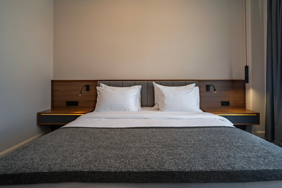 Номерной фонд отеля - 30 номеров. 2-й этаж состоит из 12 стандартных двухместных номеров с балконами, оснащенными небольшими столиками с двумя стульями. Номера оборудованы двуспальными кроватями, один из которых - 211, располагает двумя раздельными кроватями. 3-й этаж состоит из 18 номеров, два из которых VIP номера, это 317 и 318. VIP номера представляют собой идентичное, по габаритам, пространство с двумя комнатами и балконом. Остальные номера на 3 этаже являются стандартными, размером 25 кв. м, с двуспальной кроватью размером 180/200 и оборудованы также, как и стандартные номера на 2-м этаже.